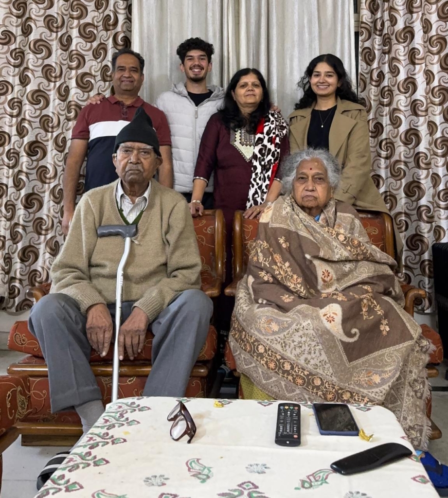 Rajnish, Mahendra Singh, Vimlesh and Bharati on the 82nd birthday of Mahendra Singh on 14.8.2021